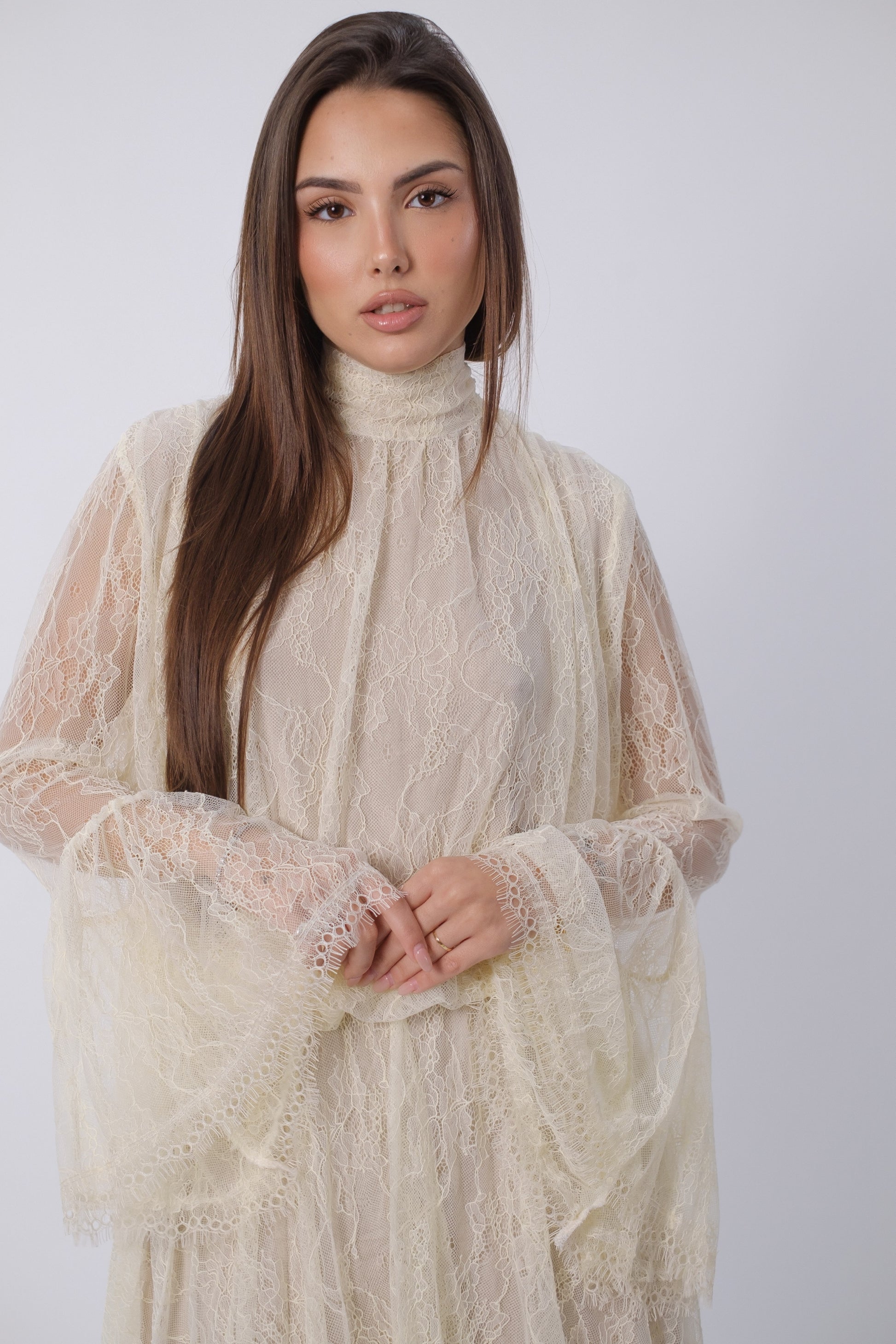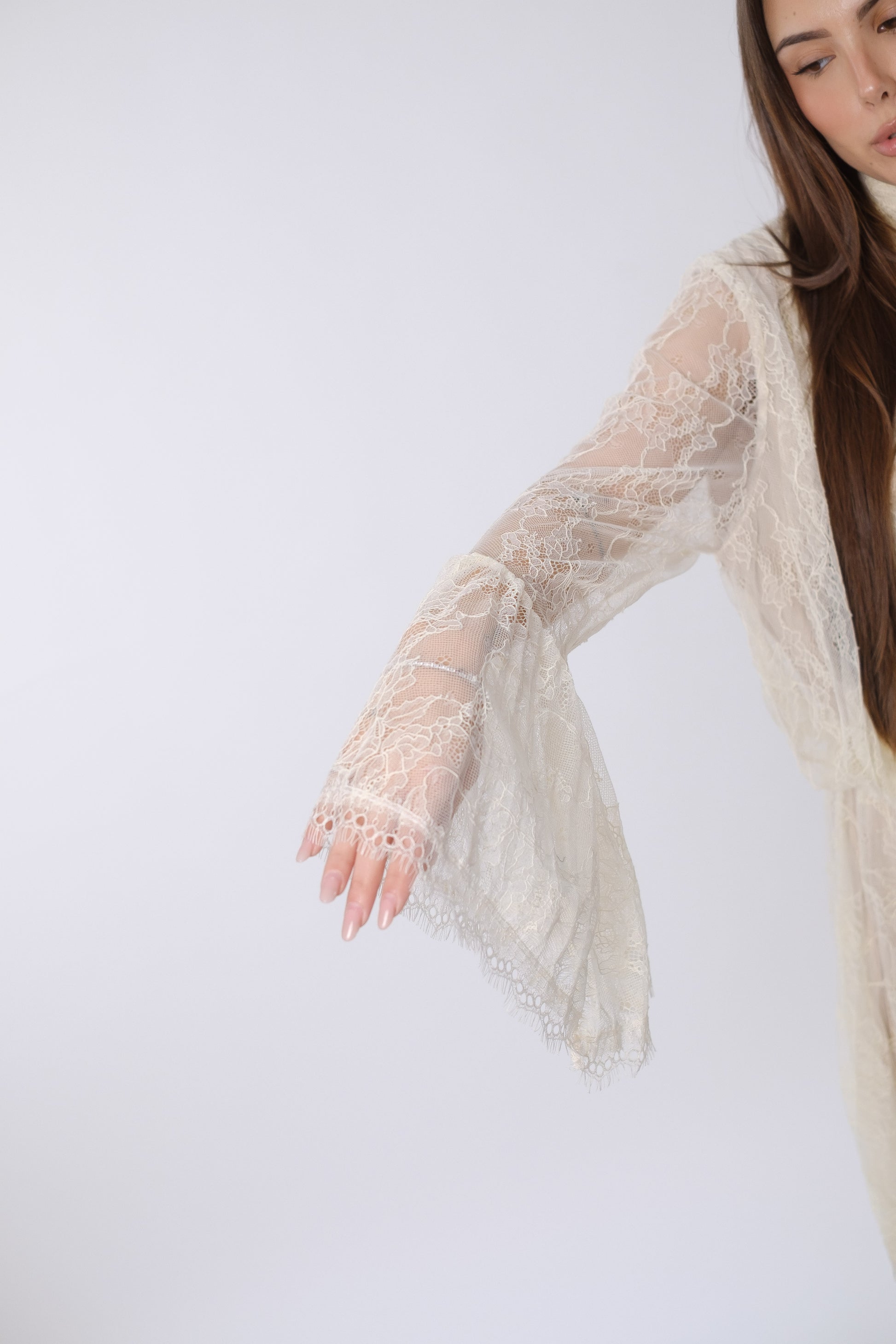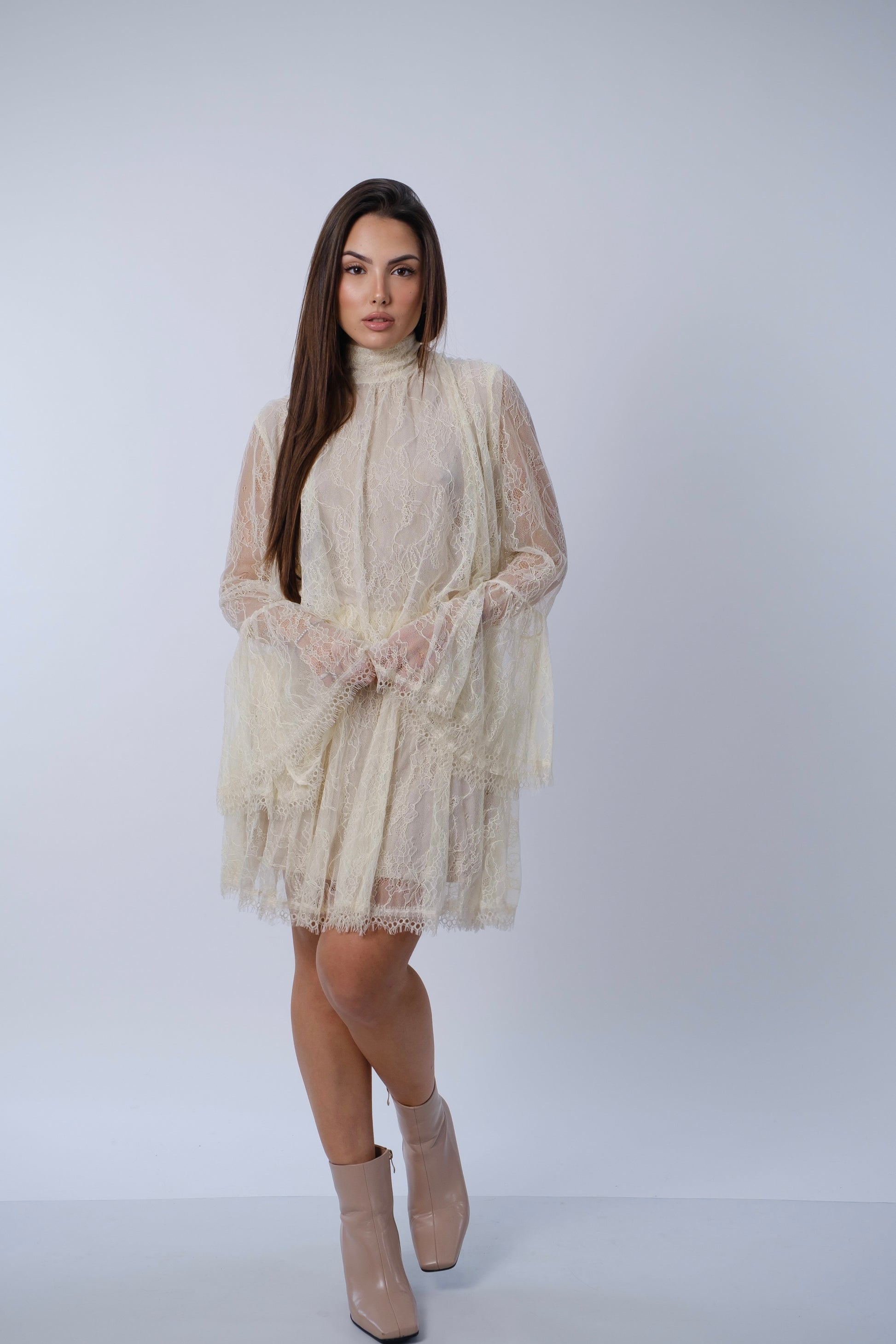 Abito in pizzo con scollatura posteriore.