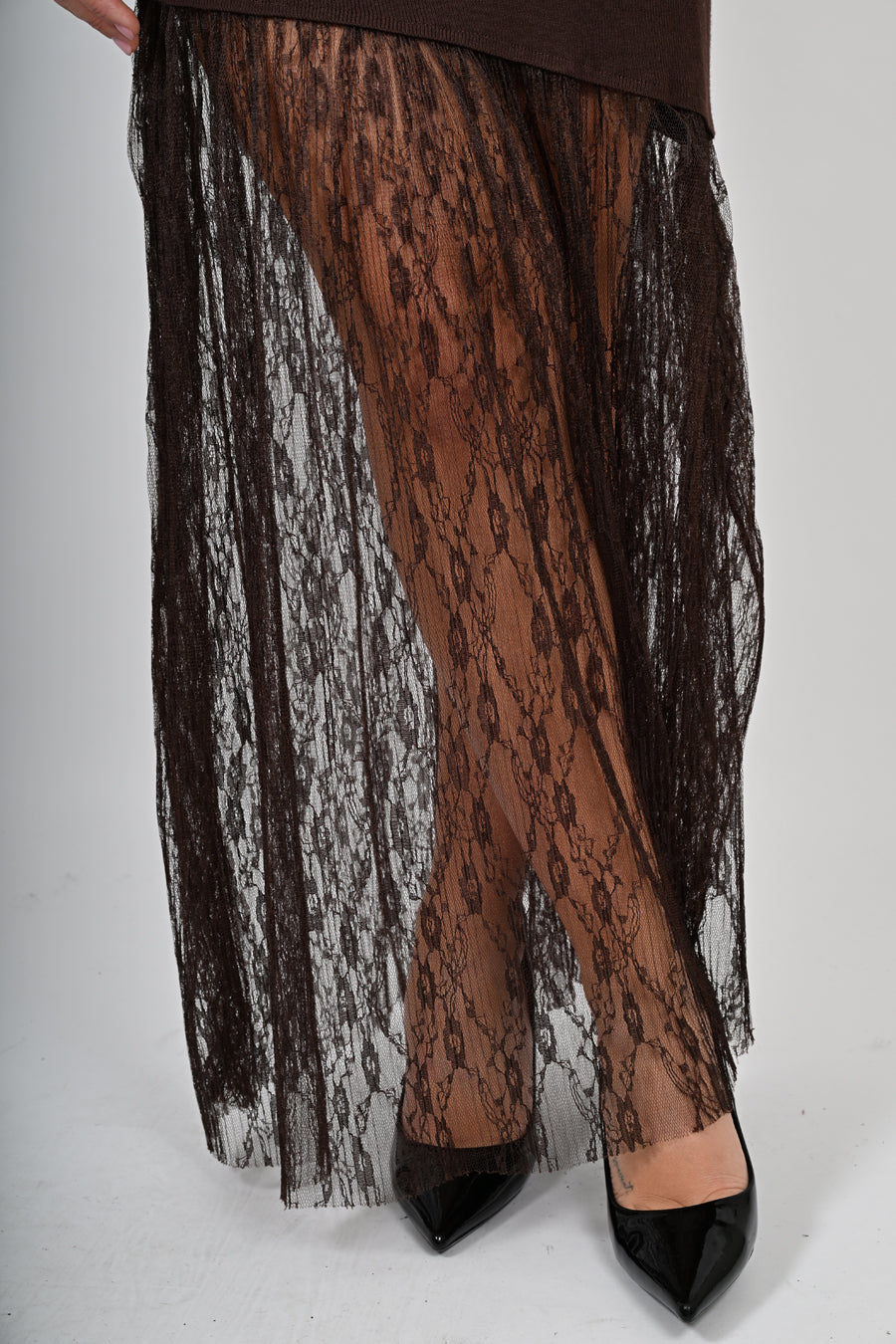 Abito lungo in maglia con pizzo