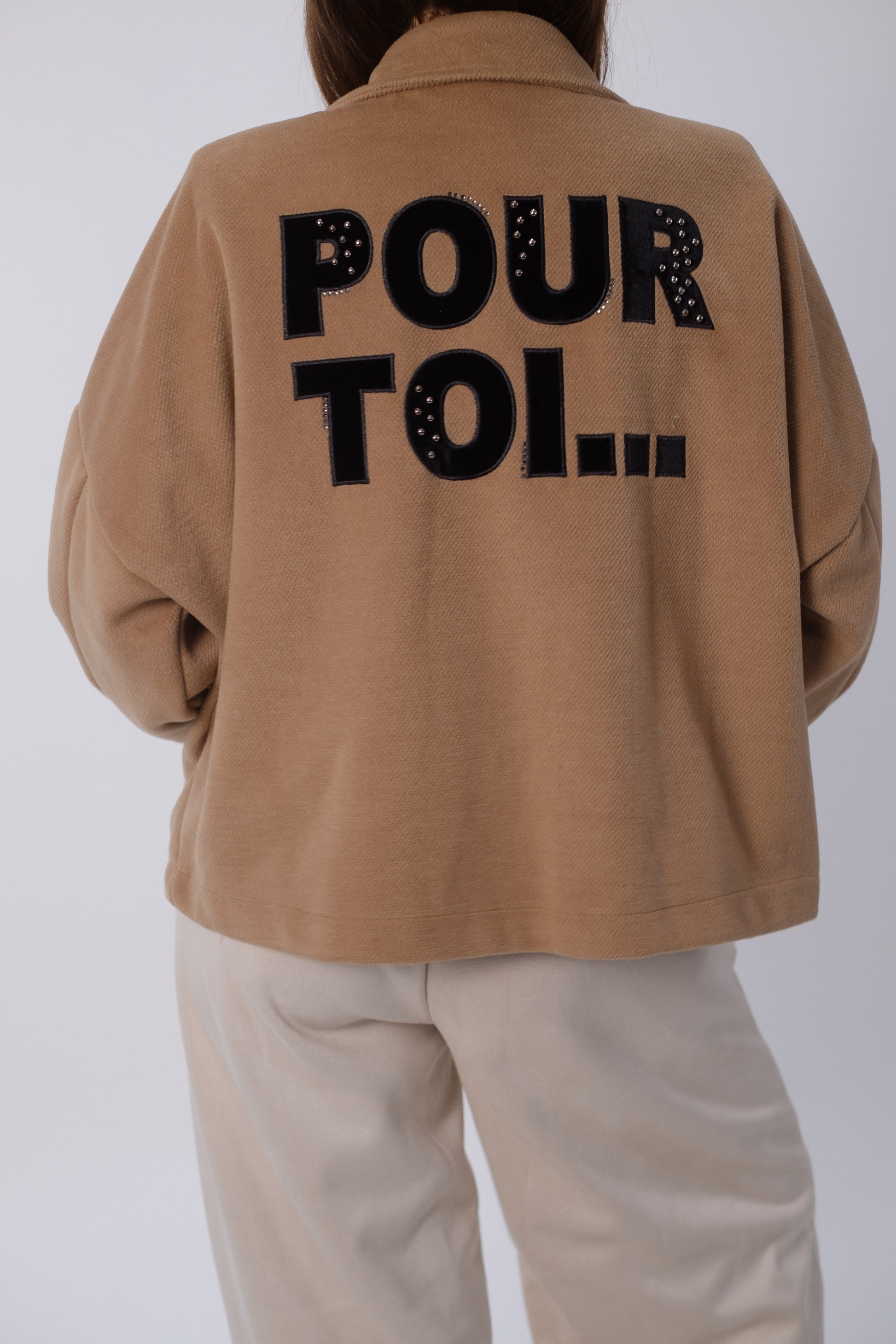 Giacca oversize forma a camicia con scritta sul retro.