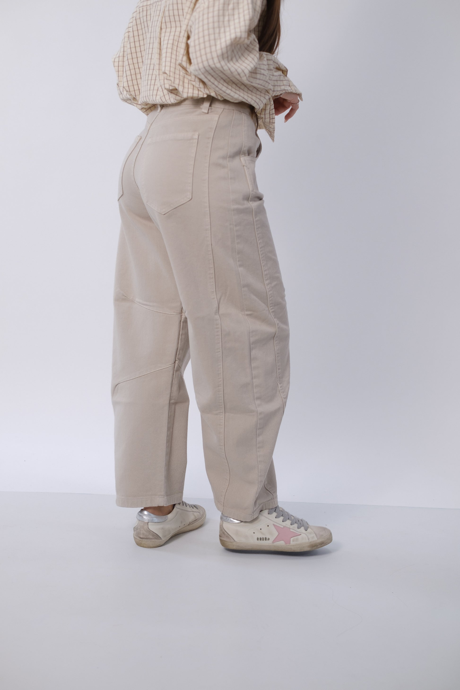 Jeans mom fit con cuciture in evidenza.