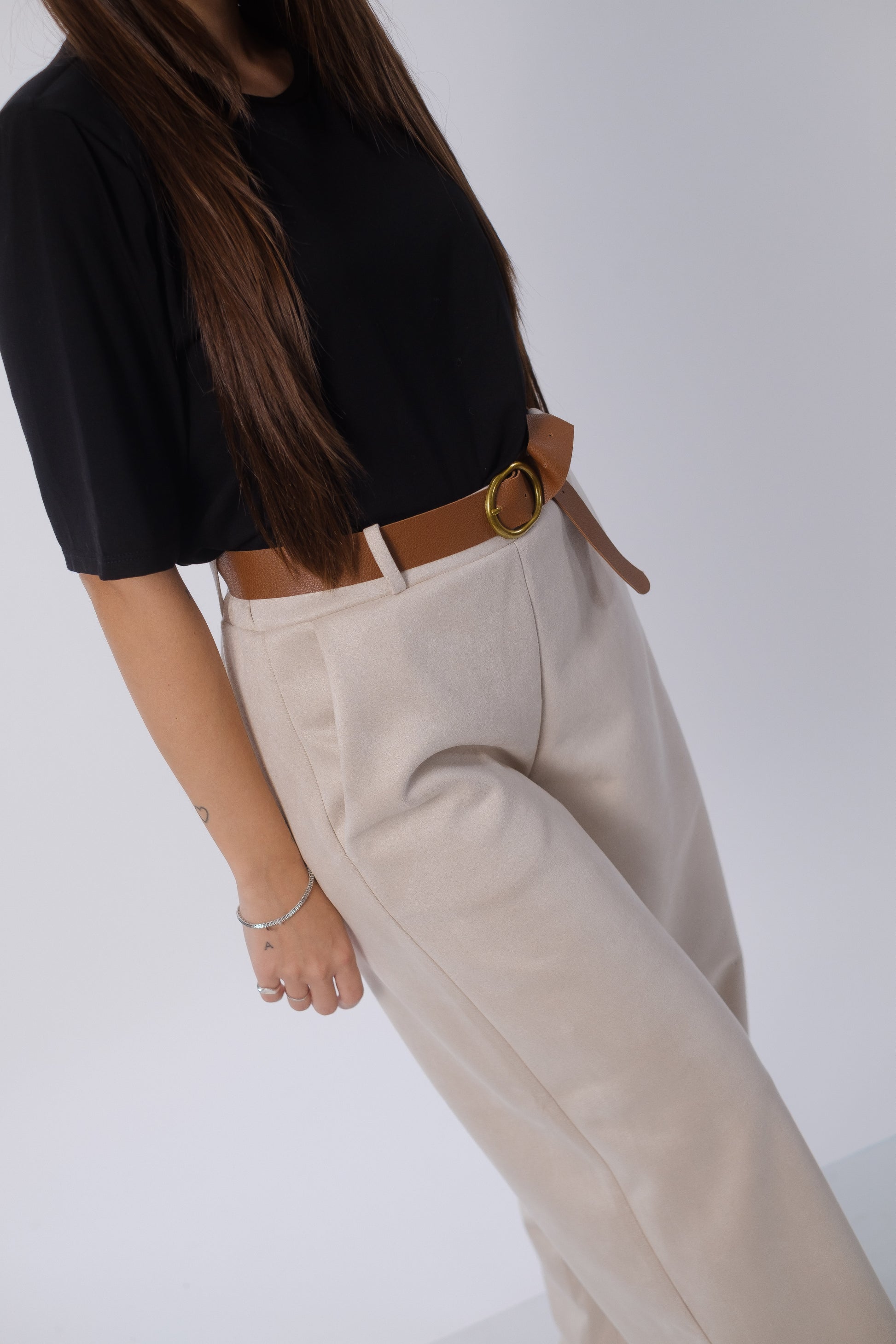 Pantalone ballon fit in camoscio con cintura.