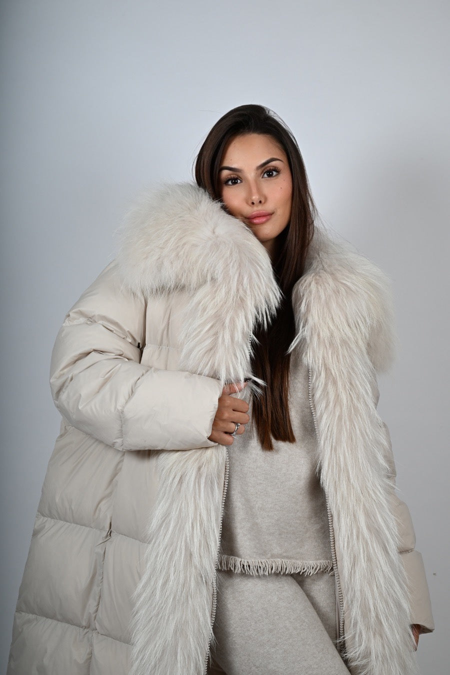 Piumino imbottito con pelliccia