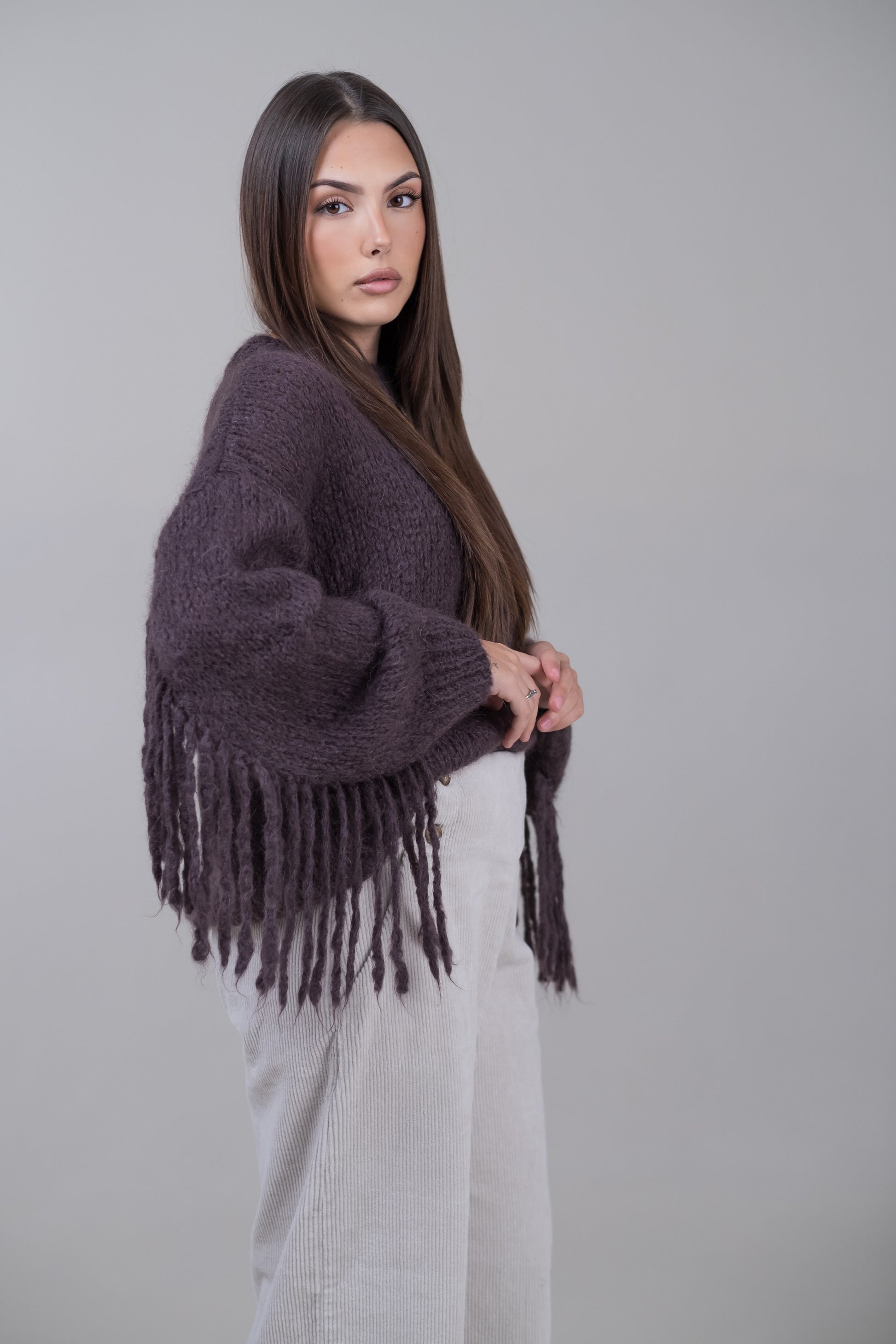 Pullover in mohair con frange